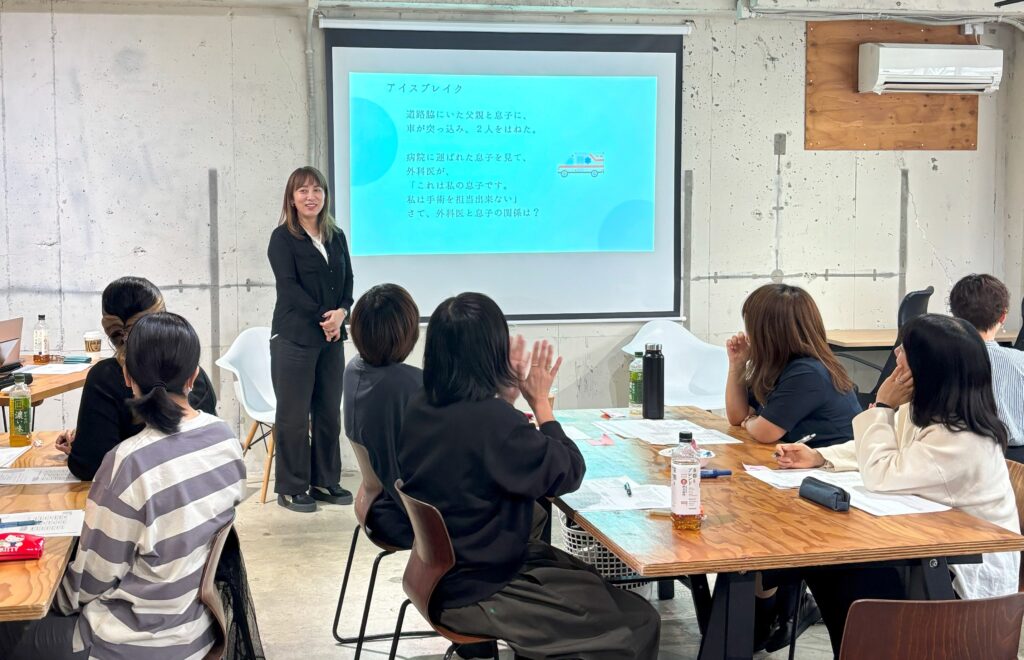 後半は日常の様々なシーンを切り取り、そのシーンが男性だった場合と女性だった場合の周りからの見方の違いについて、たくさんの事例をもとに検証することで、誰もが陥りがちなアンコンシャス・バイアスについての気づきを得て、ダイバーシティ経営のメリットや必要性について学んでいきました。