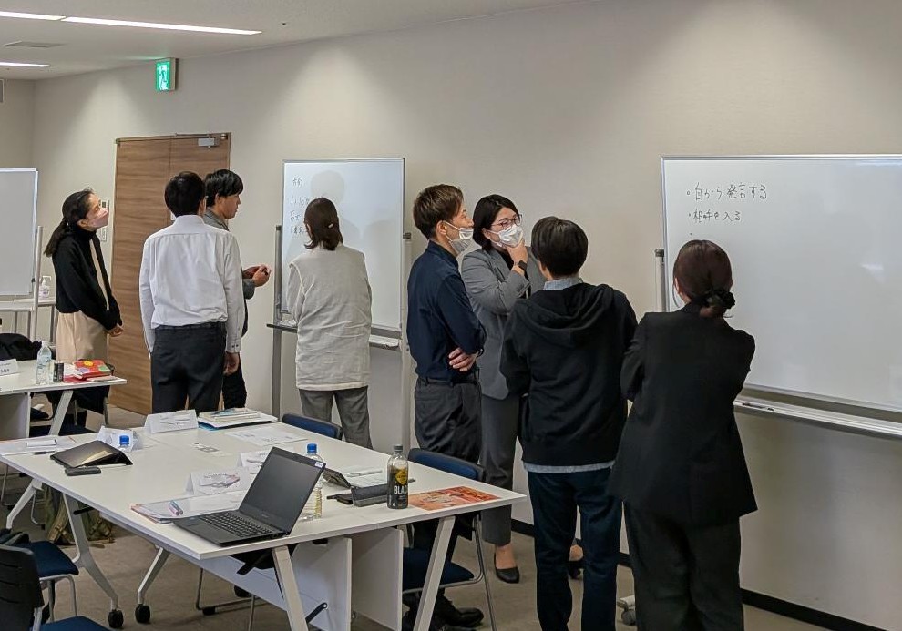 ・みんなの意見を引き出すような投げかけやヒントをいただき、良い意味でとても疲れました。考え方にもクセがあり、それに囚われ、考えているつもりが、普段どれだけ考えることをしていなかったかを実感した1日でした。今回学んだ思考の整理を行いながら業務に励みたいと思います。